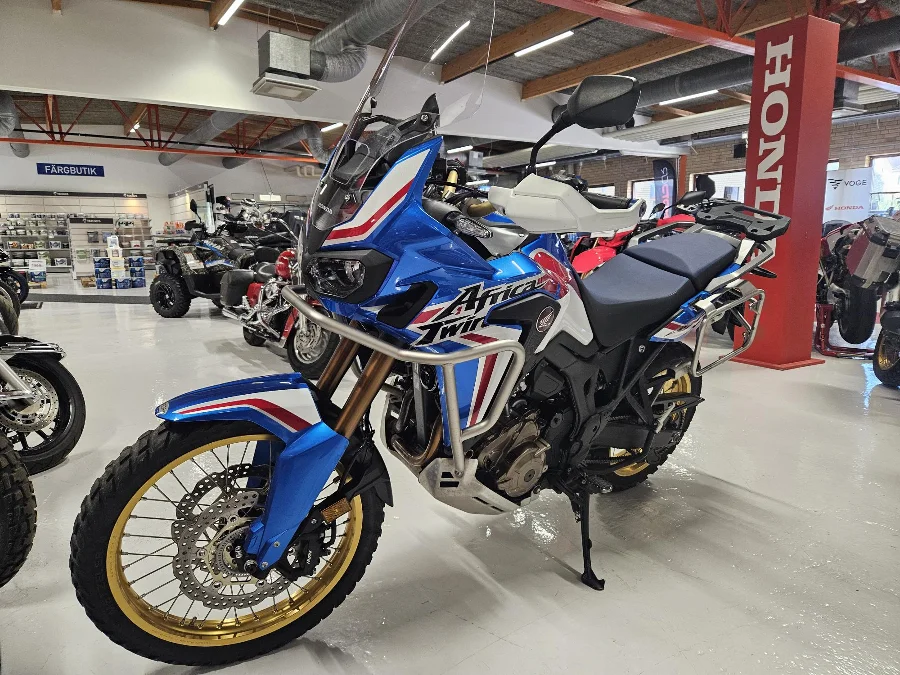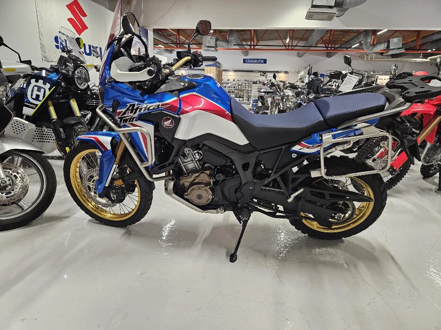 en CRF1000 DCT i fint skick med Honda original väskkitt, nybesiktigad, motorbågar, handvärme, 12-volt uttag, grövre hasplåt, centralstöd, säljes åt kund, finans ordnas