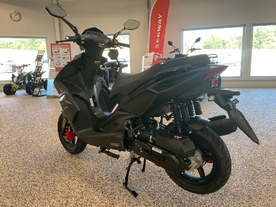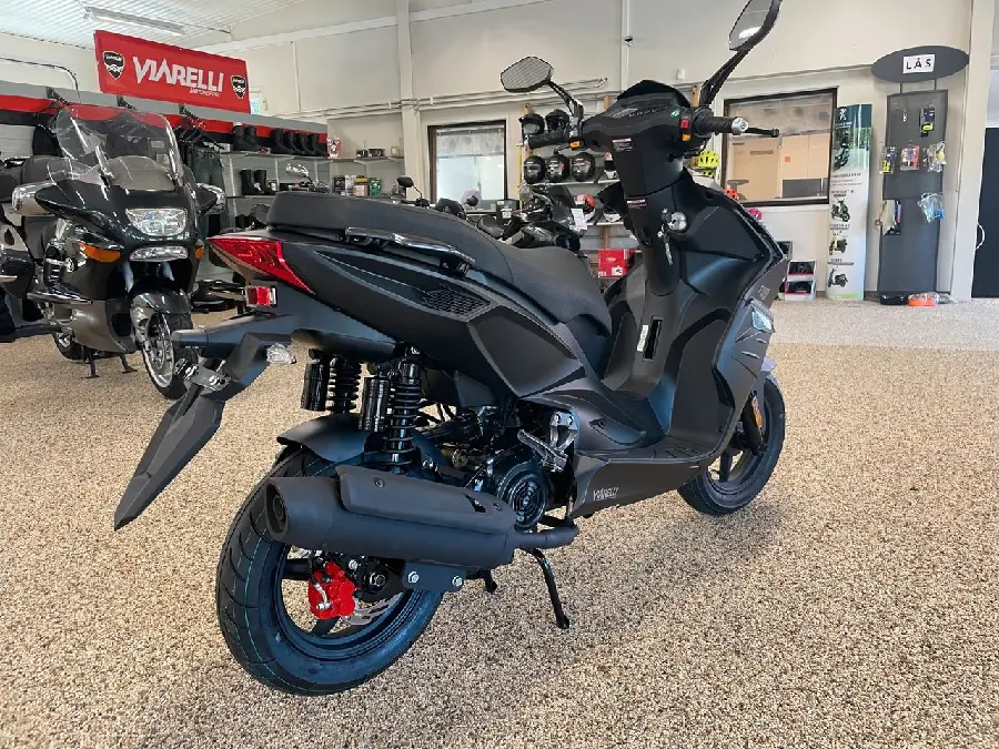 Forza... är utrustad med en modern GY6-motor med EFI-insprutning, vilket ger en smidig och pålitlig kraftöverföring från sin 49cc-motor. Du får direkt respons vid gaspådrag, perfekt för snabba starter vid rödljusen och smidig acceleration genom trafiken. Med de ventilerade waveform-skivbromsarna både fram och bak får du maximal bromsverkan i alla situationer, oavsett om du kör i stadstrafik eller tar kurvorna med precision. Det robusta avgasröret ger ifrån sig ett behagligt och sportigt ljud, vilket gör att Forza inte bara ser snabb ut – den låter som det också