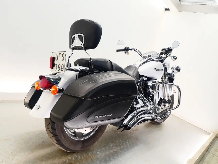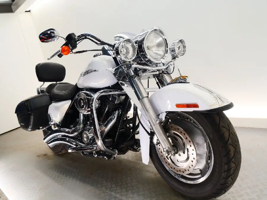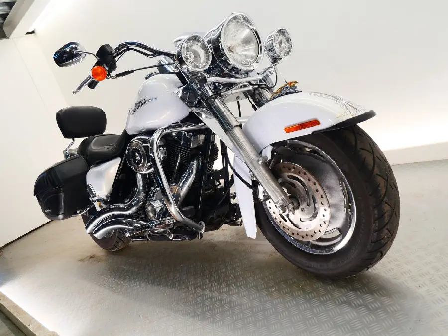 En Road King Custom -07 i vit pearl! Big Radius-system (original och även turn-downs följer med), snyggt pinstripad framskärm m.m.
