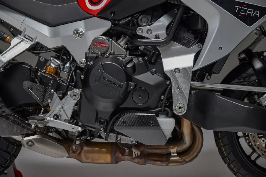 Med en torrvikt på endast 214 kg (utan bränsle) och fullt justerbara Öhlins-dämpare är TERA lika mycket konstverk som ett kompromisslöst prestandamonster.