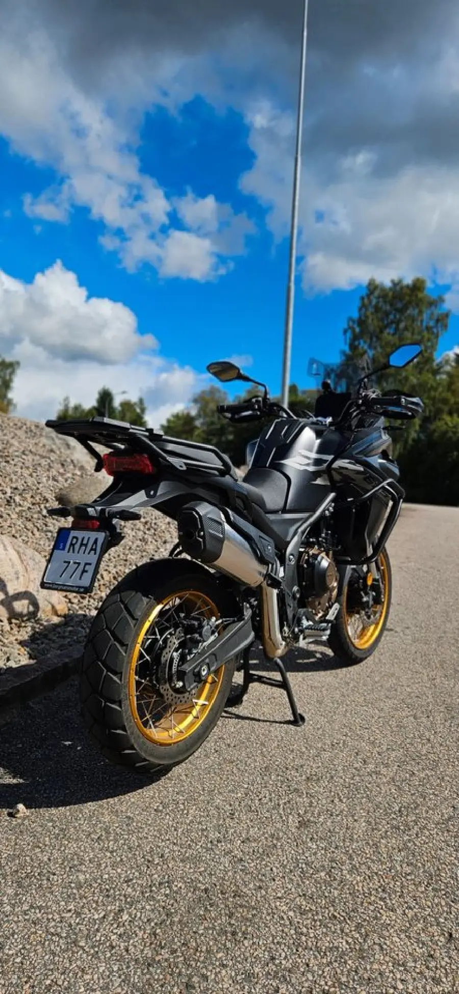 En äventyrshoj som kombinerar kraft, komfort och teknik – till ett oslagbart pris. Med sin 581cc parallelltwin på 63 hk, långslagig KYB-fjädring och robusta ekrade hjul tar den dig tryggt från motorväg till grusväg. Utrustad med modern TFT-display, LED-belysning och till och med inbyggd dashcam – här får du premiumkänsla utan premiumprislapp.
