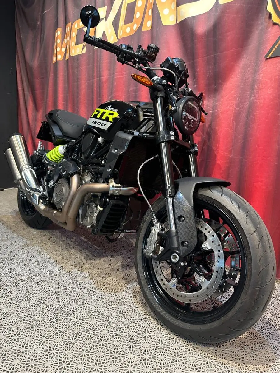 Välkommen att provköra en av världens roligaste hojar! FTR1200 från Indian har ett utseende som tilltalar samtidigt som den går otroligt fint på kurviga vägar. Detta ex är utrustat med tailtidy, miniblinkers i bak, styrändspeglar. Första service görs innan leverans!