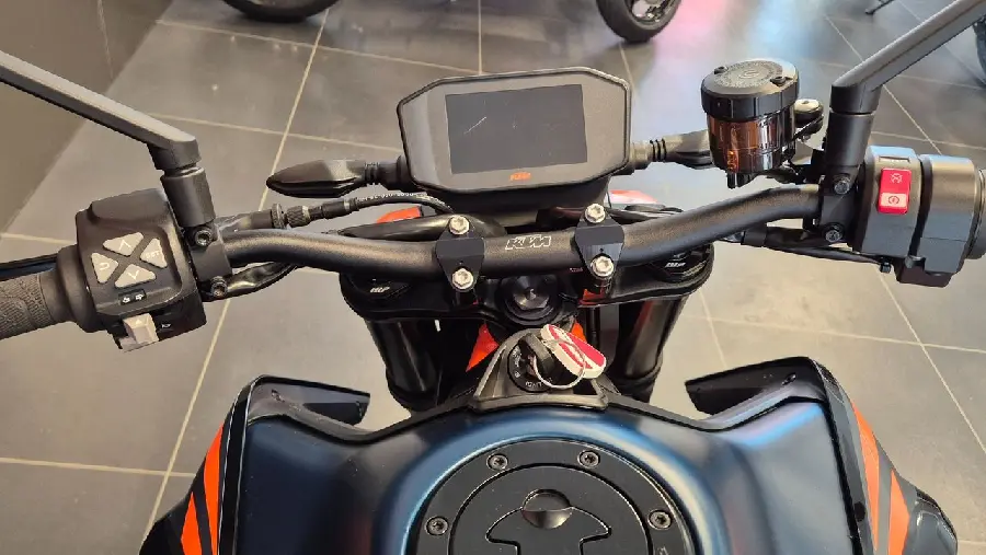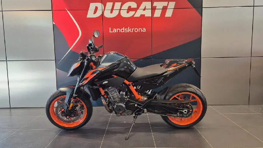 KTM 890 Duke R! Nu har vi fått in en riktig bushoj. Lätt ( ca 185 kg fulltankad som den står ), bra med effekt ( 121 hk ) trevlig utrustning i form av Techpack, tailtidy, Slip On. Alla originaldelarna följer med.