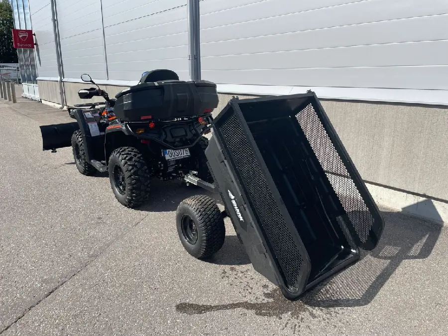Goes Terrox 500 *Family Edition Plus* är utrustad med Bumper fram+bak låda bak plog med snabbfäste och en tippbar gårdsvagn med gallergrindar!! Allt monterat och klart!! Perfekt för allt som gårdens sysslor kräver!!