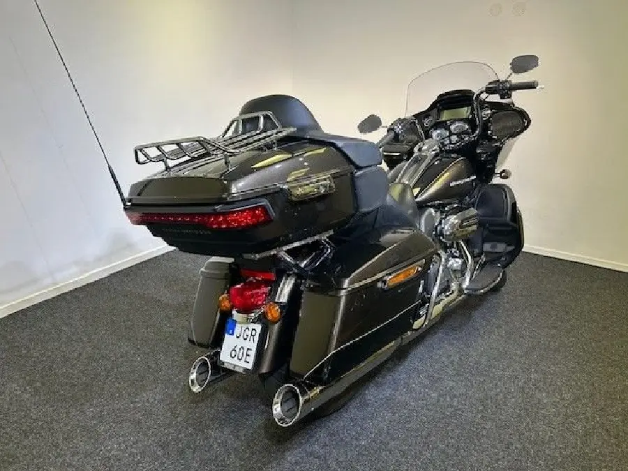Fin Road Glide Limited från Harley-Davidson. Byggd för långa resor med komfort i fokus. Den har toppbox med ryggstöd, väörmehandtag. Den perfekta hojen för dig som vill dra ut på turné i stil och komfort!