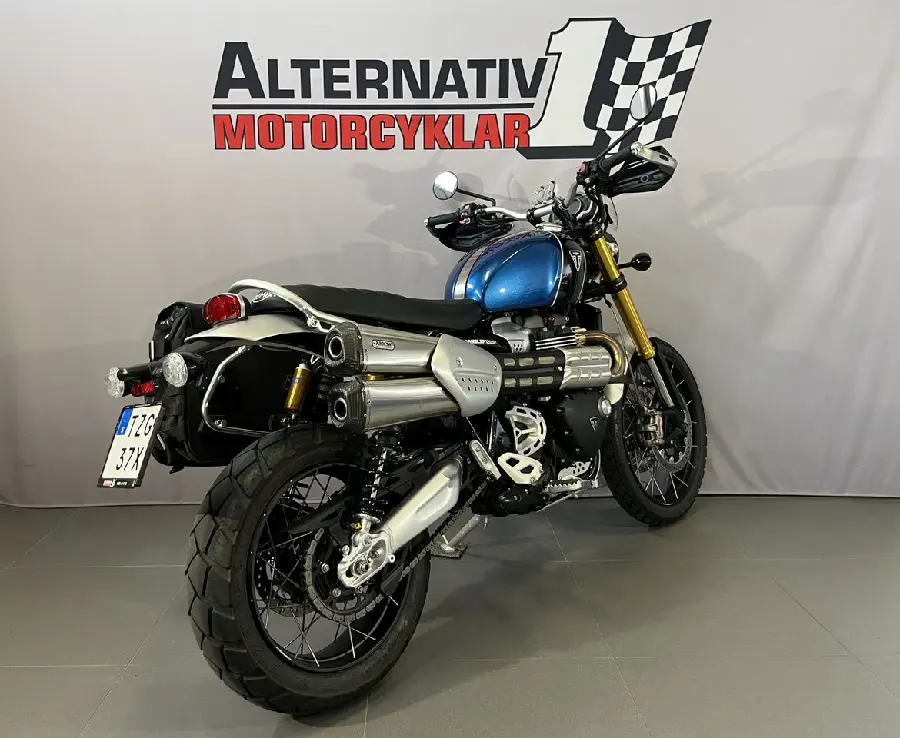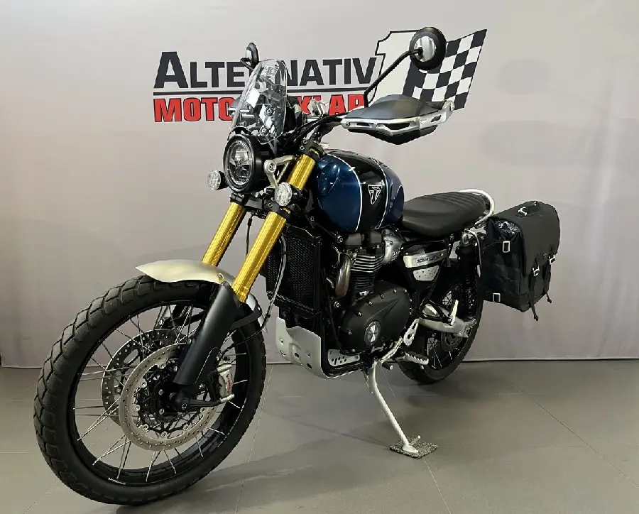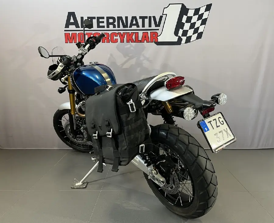 Triumphs Scrambler 1200 XE från 2019 med låga 226 mil på mätaren. En brukare sedan ny. Triumph Bonnevilles klassiska 1200 cc parallelltwin med modern design och förstklassig förarkomfort utan att glömma Triumphs genuina DNA både onroad och offroad. 6-växlad med 90 hk och hela 1600 mils service-intervaller. TFT-skärm med möjlighet till bluetooth-koppling. 5 körlägen. Farthållare. ABS. Avstängbar TC. Öhlins fjädring. Handtagsskydd. Nyckellös tändning. LED-belysning. USB-laddning. Bakgrundsbelysta manöverknappar och joystick. Extra utrustad med : Sidoväska. Liten ruta. Arrow Ljuddämpare. Senast servad... augusti 2025 vid 225 mil. Besiktigad till september 2027. Detta är en förmedling så inget inbyte på denna hojen. #Triumph #Scrambler #XE #Scrambler XE #1200 #Scrambler 1200 #Scrambler1200 #Modern Classic #off-road #Äventyrshoj #Grushoj #Grusvägshoj #TZG37X #TZG #37X