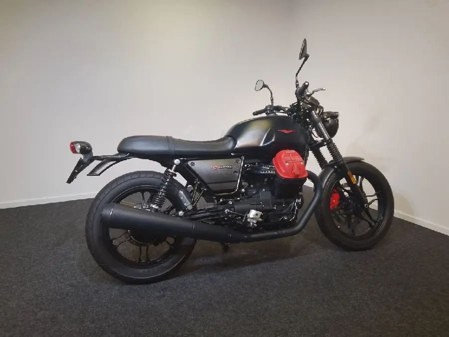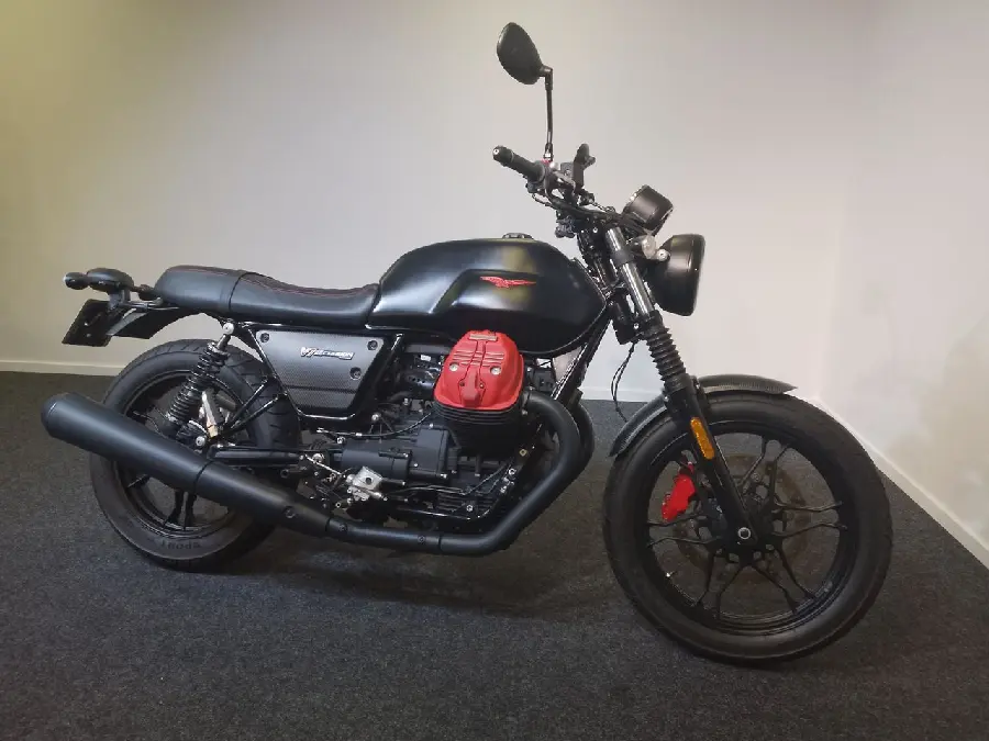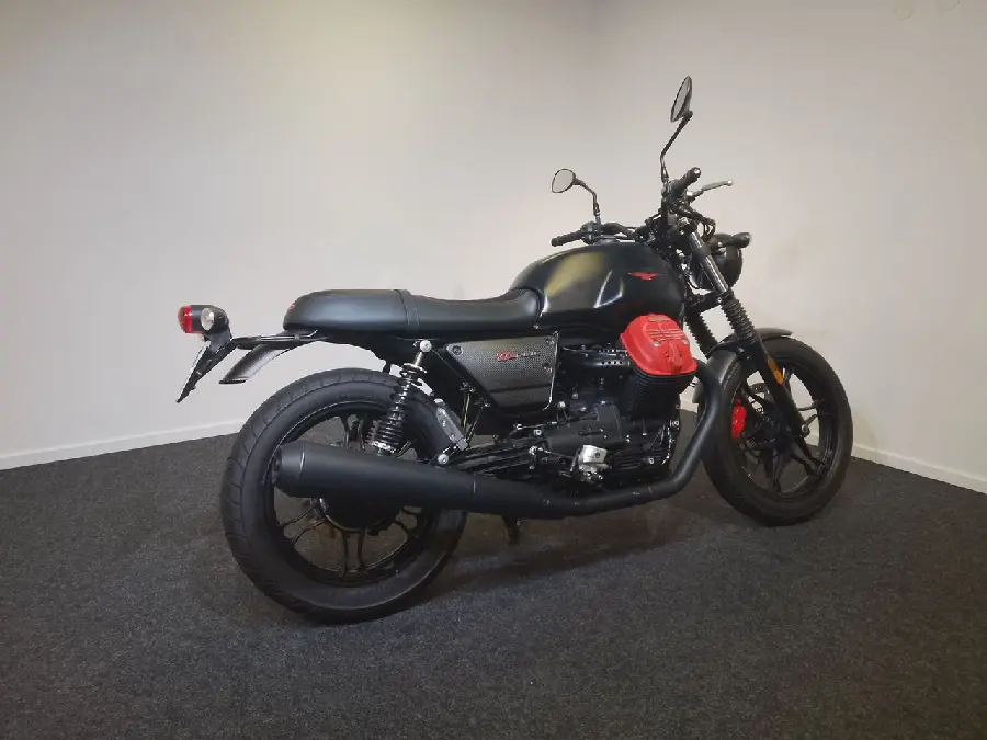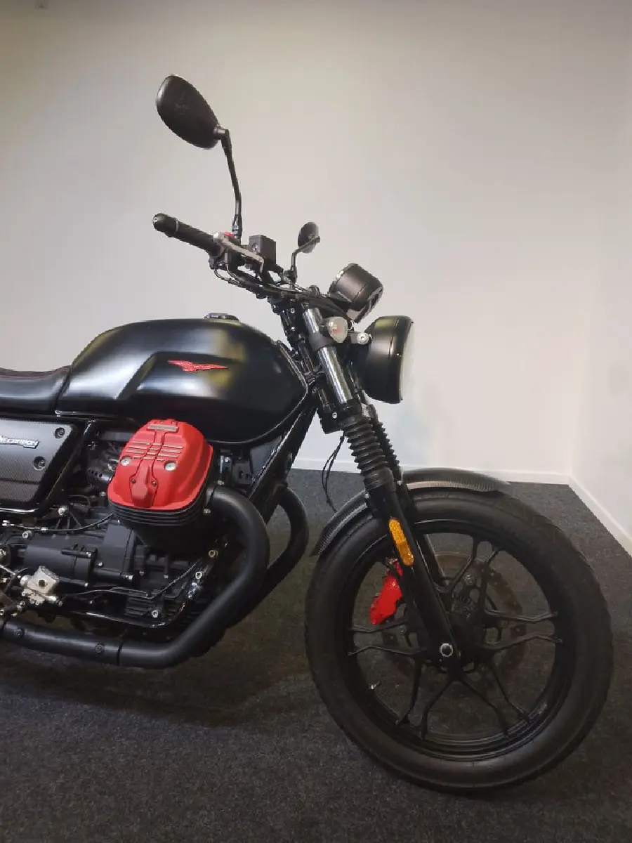 En jättefin Moto Guzzi V7 III Carbon i mattsvart och röda detaljer. En klassisk bobber-stil som levererar 744cc och endast gått 302mil!