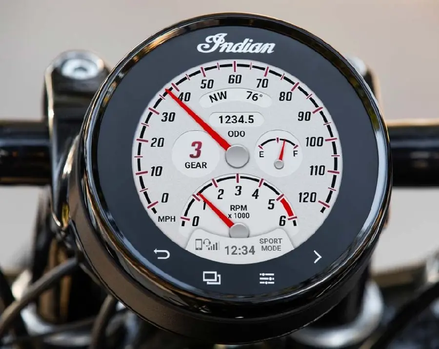 Modern funktion i klassisk förpackning: 4-tums pekskärm integrerad som en analog mätare. Styr ride modes, navigering, telefon och Bluetooth-ljud via Ride Command-systemet.