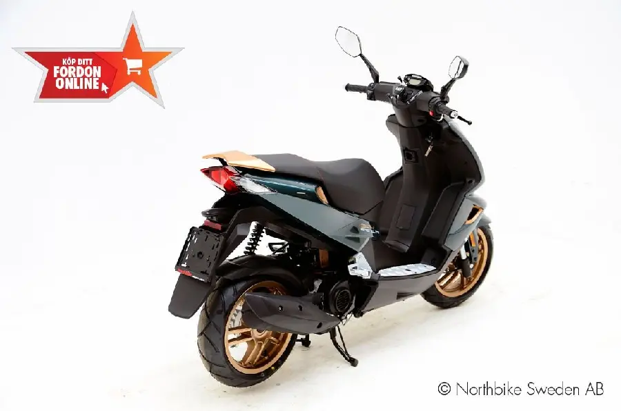 Peugeot Speedfight 4 är en modern 50 cc scooter med sportig design och hög körglädje. Motorn levererar god bränsleekonomi och pålitlighet för vardagspendling. Den är lättkörd med låg vikt på cirka 97 kg, tankvolym 7 liter och sitthöjd runt 800 mm. Midnight Green är en ny färgsättning som ger ett exklusivt och unikt intryck.