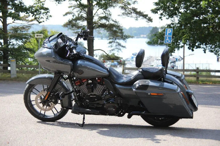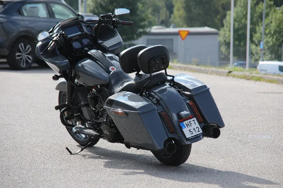 H-D:s milslukare FLTRXS - Roadglide - är laddad med premiumdetaljer och framtagen speciellt för att vara extra njutbar på långresorna. CVO är den specialutrustade versionen framtagen av Harley-Davidsons Custom Vehicle Operations (CVO) team med den vassaste 117 ci-motorn på över 1900 kubik och allt i utrustningsväg man kan önska samt enorma mängder klarlack.