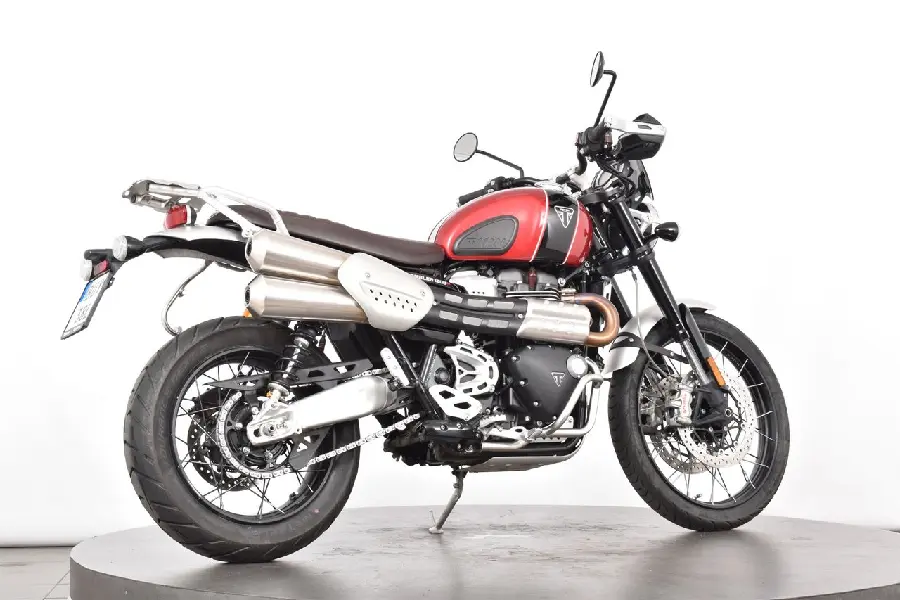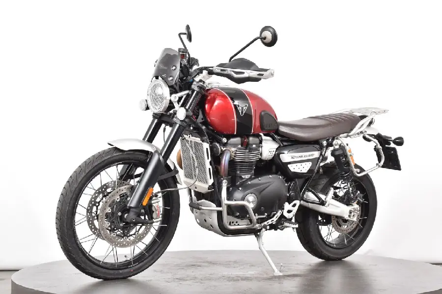 Upptäck äventyrets själ i Triumph Scrambler 1200 XC 2023 – en elegant blandning av retrodesign och modern prestanda. Driven av en kraftfull 1 200 cc twinmotor, premium Showa-/Öhlins-fjädring och Brembo-bromsar – redo att bemästra både asfalt och grus.
