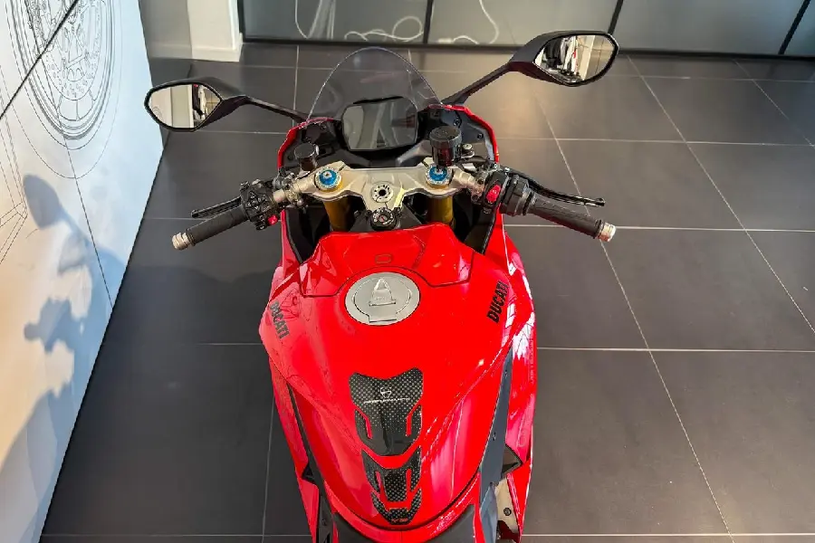Ducati Panigale V2 S i originalutförande med en tank pad.