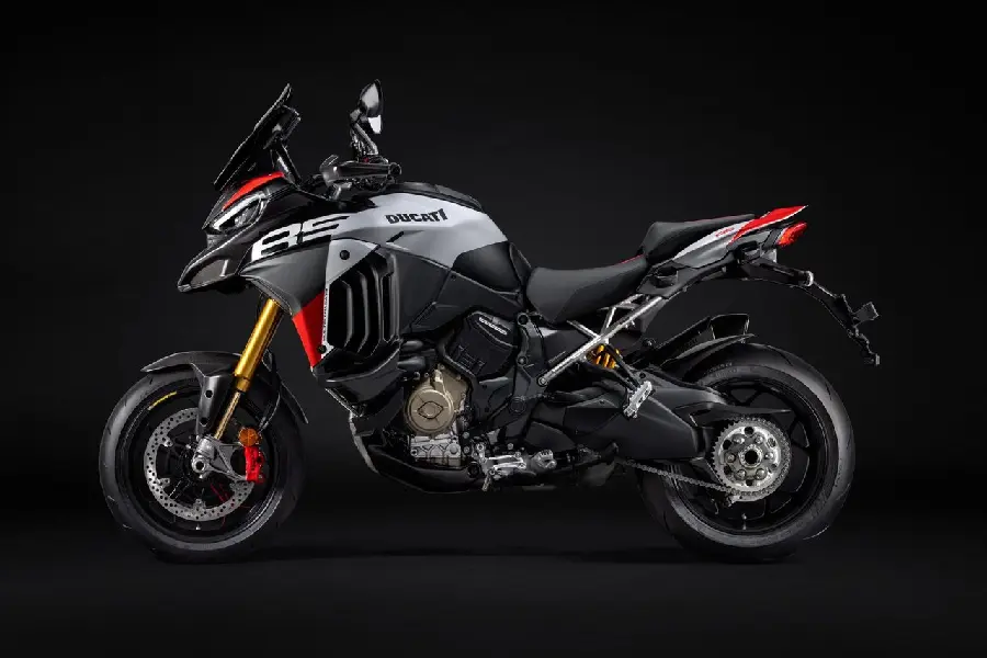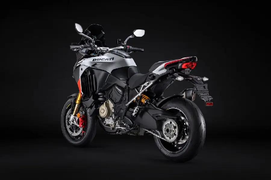 Med sitt nya RS-chassi, elektroniskt justerbar Öhlins-fjädring, Brembo Stylema-bromsar och med starka V4 Stradale från Panigale-familjen på hela 180hk kombinerar Multistrada RS långresornas komfort med racinginspirerad prestanda. Designen är uppdaterad med aggressiva linjer, RS-detaljer i kolfiber, smidda fälgar, torrkoppling, Akrapovic och mycket mycket mer.