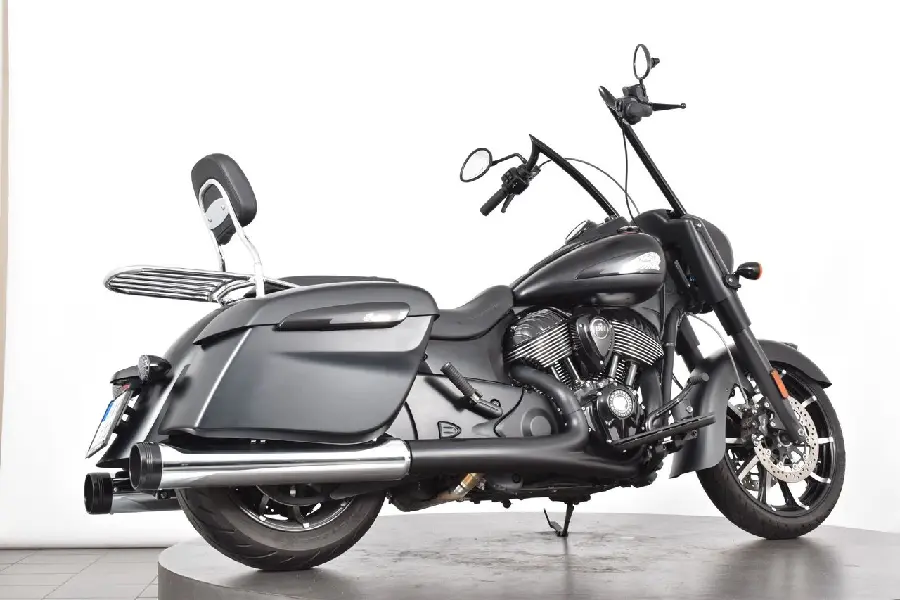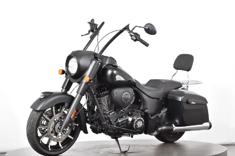 Indian Springfield Dark Horse 2023 – rå kraft möter tidlös elegans. Med sin mörka design, ikoniska V-twin på 1890 cc och modern teknik ger den dig friheten att äga vägen. En touringhoj för dig som vill ha både attityd och komfort.