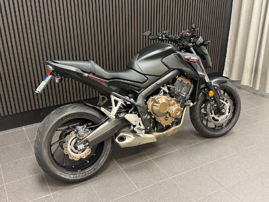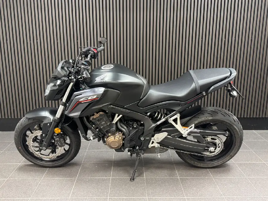 Utrusning: Tail-Tidy. Styrändsspeglar. Justerbara broms och kopplingsgrepp. Styrhöjare. Handtagsvärme. Bra att veta: Besiktad till 2026-04-30. (CB650. CB 650. CB 650 F. Hornet)