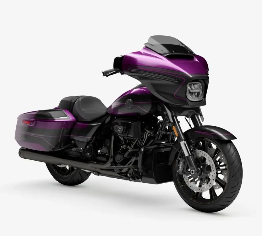 Harley-Davidson StreetGlide CVO 2025 i Poison Berry / schorched chrome med svart motor erbjuder en unik, mörk finish som verkligen sticker ut. Den svarta motorn och detaljerna ger en aggressiv och stilren look. Den kraftfulla Milwaukee-Eight 121-motorn levererar topprestanda, och den här modellen är utrustad med alla de avancerade funktionerna för en lyxig och bekväm körning.
