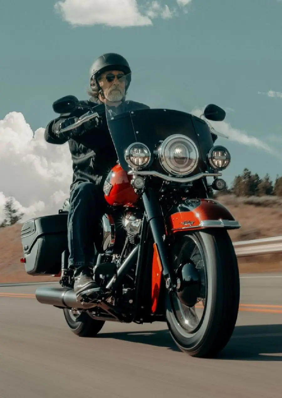 Harley-Davidson Heritage Classic 2025 i Whiskey Fire/Vivid Black med ekerhjul och svart motor erbjuder en elegant och klassisk design. Den lyxiga finishen tillsammans med de stiliga ekerhjulen ger en unik och sofistikerad look. Med den kraftfulla motoren får du både imponerande prestanda och en fantastisk körupplevelse på vägen.