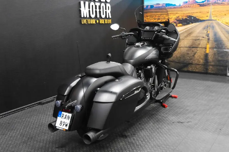 Nu har du chansen att äga en av de mest eftertraktade touringmotorcyklarna på marknaden, i ett skick som är i princip nytt! Denna Indian Challenger Dark Horse har endast rullat 397 mil och är redo att ta dig ut på vägarna med stil och kraft.