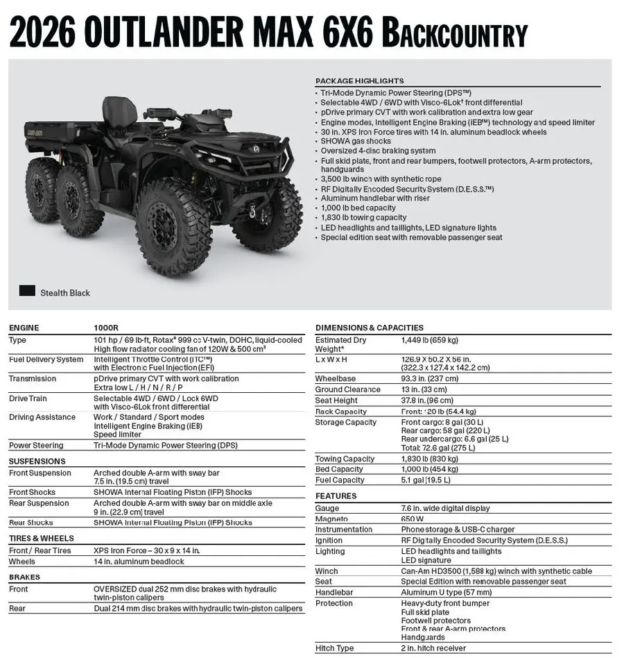 Can-am Outlander MAX 6X6 Backcountry 1000R • 2026
