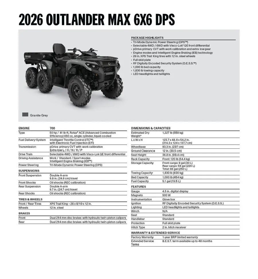 Can-am Outlander MAX 6X6 DPS 700 • 2026