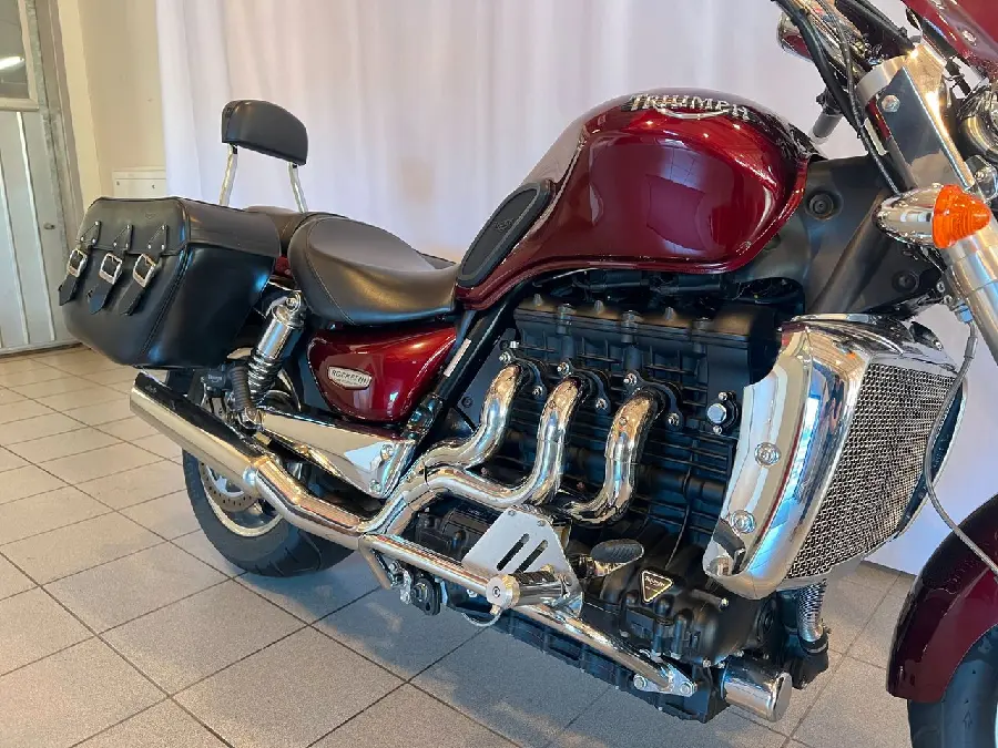 Letar du efter en motorcykel som verkligen sticker ut? Då är Triumph Rocket III svaret. Med sin enorma 2294 cc trecylindriga motor och ett vridmoment som får de flesta hojar att blekna, är detta en maskin byggd för att imponera – både på vägen och när den står parkerad.
