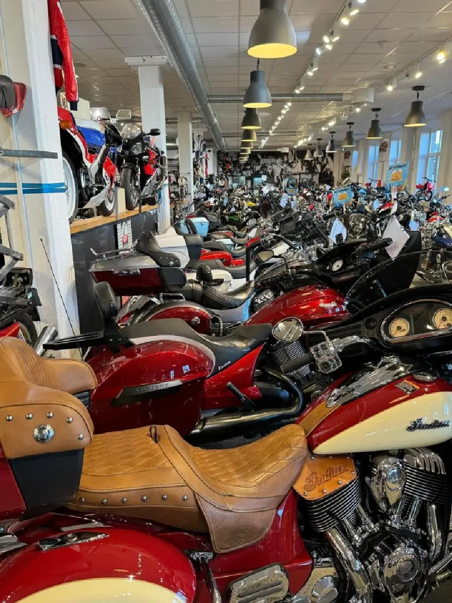 Vi är auktoriserade återförsäljare för Triumph, Indian Motorcycles, Honda, Zero el-hojar, Boss Hoss, mm. Vår specialitet har historiskt varit Harley-Davidson & customhojar, numera finns det en bred variation, allt från liten smidig offroad till största bussen.