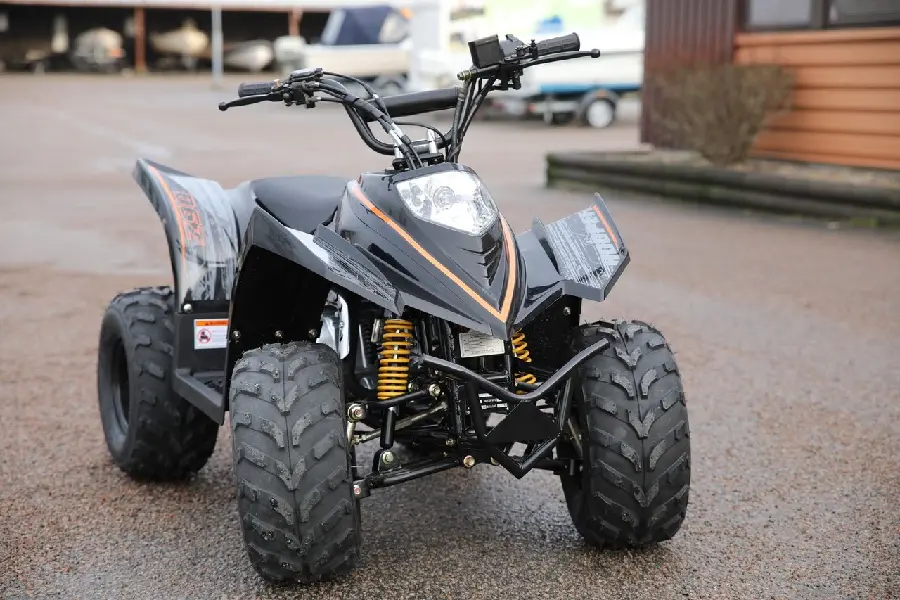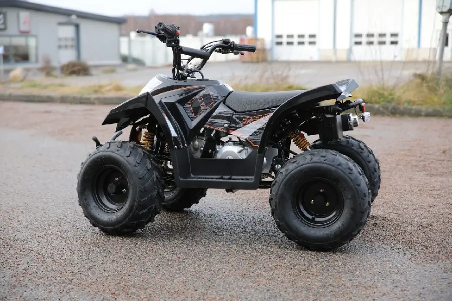 Hooper Z90 är en kul och smart 4-hjulig motorcykel med grovmönstrade terrängdäck för de yngre förarna som funkar lika bra i terräng som på gården. Det är en riktig motorcykel med elstart belysning fjädring och bromsar både fram och bak. Det finns dessutom en smart parkeringsbroms som använder bakbromsen. Motorn är en 4-taktare på 3.4 hästar som driver på båda bakhjulen via en automatväxellåda. Topphastigheten är ställbar mellan 10 och 50 km/h. Hooper Z90 lämpar sig för barn upp till cirka 12 års ålder. Sadelhöjden är 610 mm och torrvikten 88 kg. Pris exklusive moms: 11 196 kr.