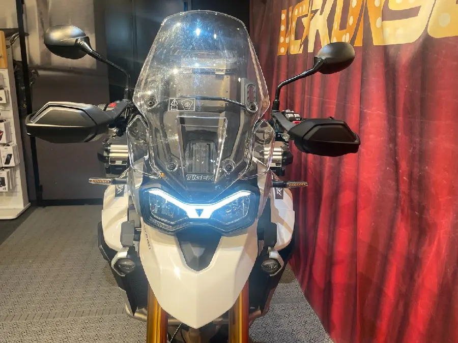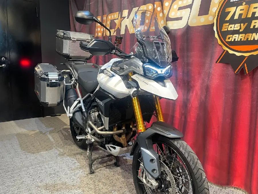 Tiger 900 Rally Pro med en ägare och endast 970 mil på mätaren. Sidoväskor och Top-Box, Scrolling LED Indicators. Senaste service gjord 2025-10-03. Full historik. Såld ny av oss.