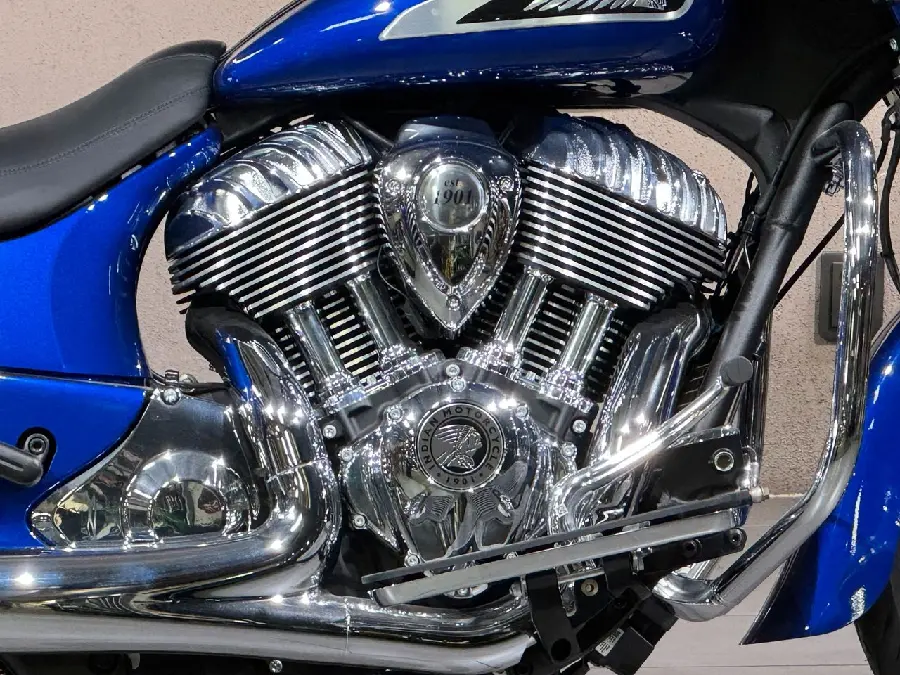--Indian Chieftain 2024 framhålls som en lyxig bagger för långfärder, känd för sin kraftfulla Thunderstroke-motor med högt vridmoment, generöst förvaringsutrymme i packväskor, bekväm ergonomi med fotplattor, och modern teknik som ett 7-tums infotainmentsystem med navigation och Apple CarPlay®. Den har också funktioner som LED-belysning, valbara körlägen, ett sänkande av motorns cylindervärme, ABS, farthållare och ett ljudsystem
