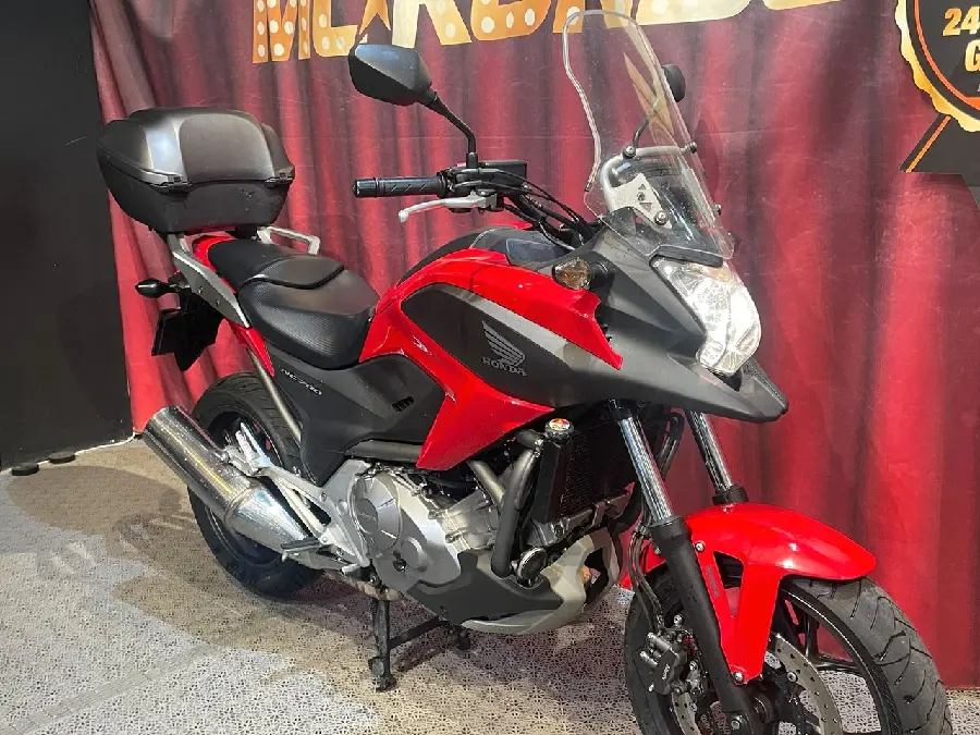 Honda NC 700 X är en mycket praktisk och bränslesnål hoj. ABS. Förvaringsutrymme där tanken sitter normalt, på denna är tanken centralt placerad vilket ger låg tyngdpunkt och hojen lätt att hantera i stadstrafik. Som pendlingsfordon är den överlägsen. Original Top-Box sitter monterad. Hög ruta, original medföljer. Vi gör årlig service på den innan leverans. Framdäck med tillverkningsår 2024 och 4 mm, bakdäck från 2025 med 5 mm mönsterdjup.