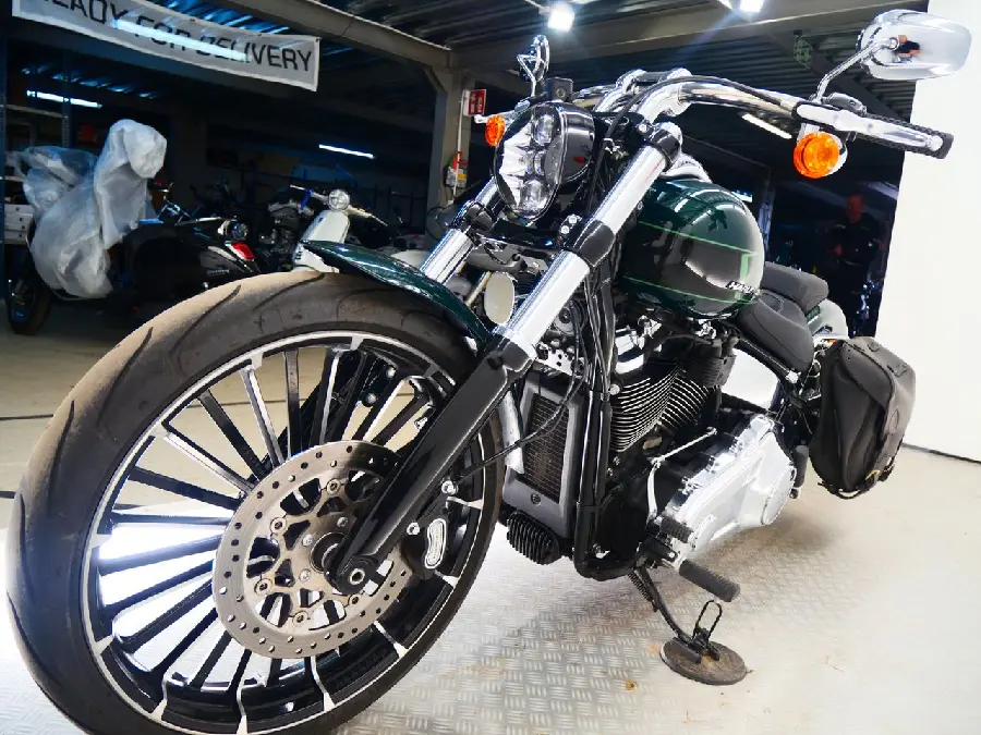 En snygg Breakout -24 med 630 mil på mätaren. S&S-slipondämpare, sidoflyttad regplåt.