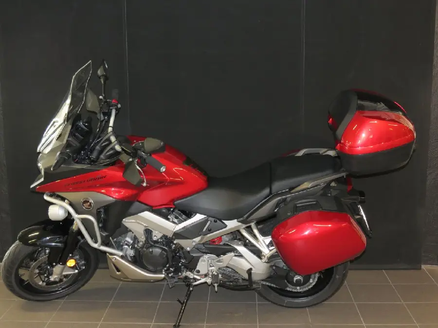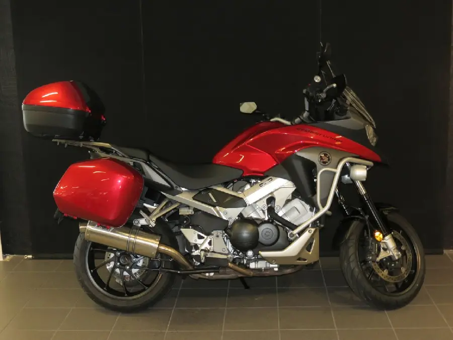 VFR800X .EN VÄLVÅRDAD RIKLIGT UTRUSTAD TOURING MC SOM HAR GÅTT ENDAST 2050 MIL .FULLUTRUSTAD MED TOURINGPAKETET . DET INNHÅLLER ABS, ORGINAL LACKERADE SIDOVÄSKOR, STORM SLIPON ( MEDFÖLJER ORGINAL). LEVERERAS MED NYA DÄCK .