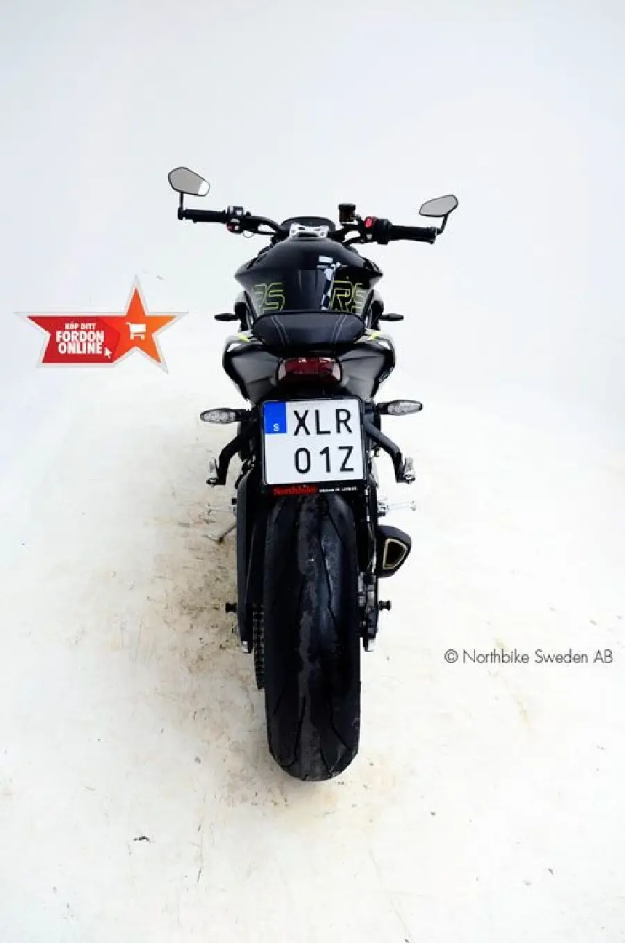 Street Triple RS har en trecylindrig 765 cm³ motor på 131 hk och toppfart 235 km/h. Tjänstevikt 188 kg. Däckdimension 120/70 ZR17 fram och 180/55 ZR17 bak. Kort sagt en lätt, exakt och riktigt sportig naked som levererar både på gata och bana.
