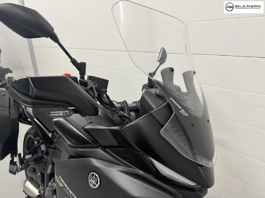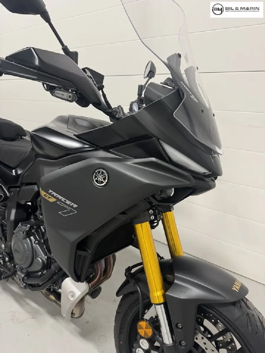TRACER 7 GT levererar den ultimata CP2-sporttouringupplevelsen oavsett om du åker lång väg hem efter jobbet eller ger dig ut på en resa över kontinenten. Med exklusiva GT-funktioner som hårda sidoväskor, uppvärmda handtag och driven av en spännande 690 cc-motor, Tack vare den kraftiga accelerationen med EU5+ CP2-motorn på 690 cc är det en spännande upplevelse att ta sig fram på vägarna med TRACER 7 GT, även med fullastade sidoväskor. Den upp och nervända framgaffeln och en monocross-stötdämpare bak med fjärrstyrd justering av fjäderförspänningen ökar stabiliteten på vägen., framåtriktade kåpor... med dubbla LED-strålkastare och animerade positionsljus förstärker motorcykelns avancerade design, medan den justerbara komfortsadel, det elektroniskt styrda gasreglaget, körlägena och farthållaren gör TRACER 7 GT till en utmärkt långfärdsmaskin.