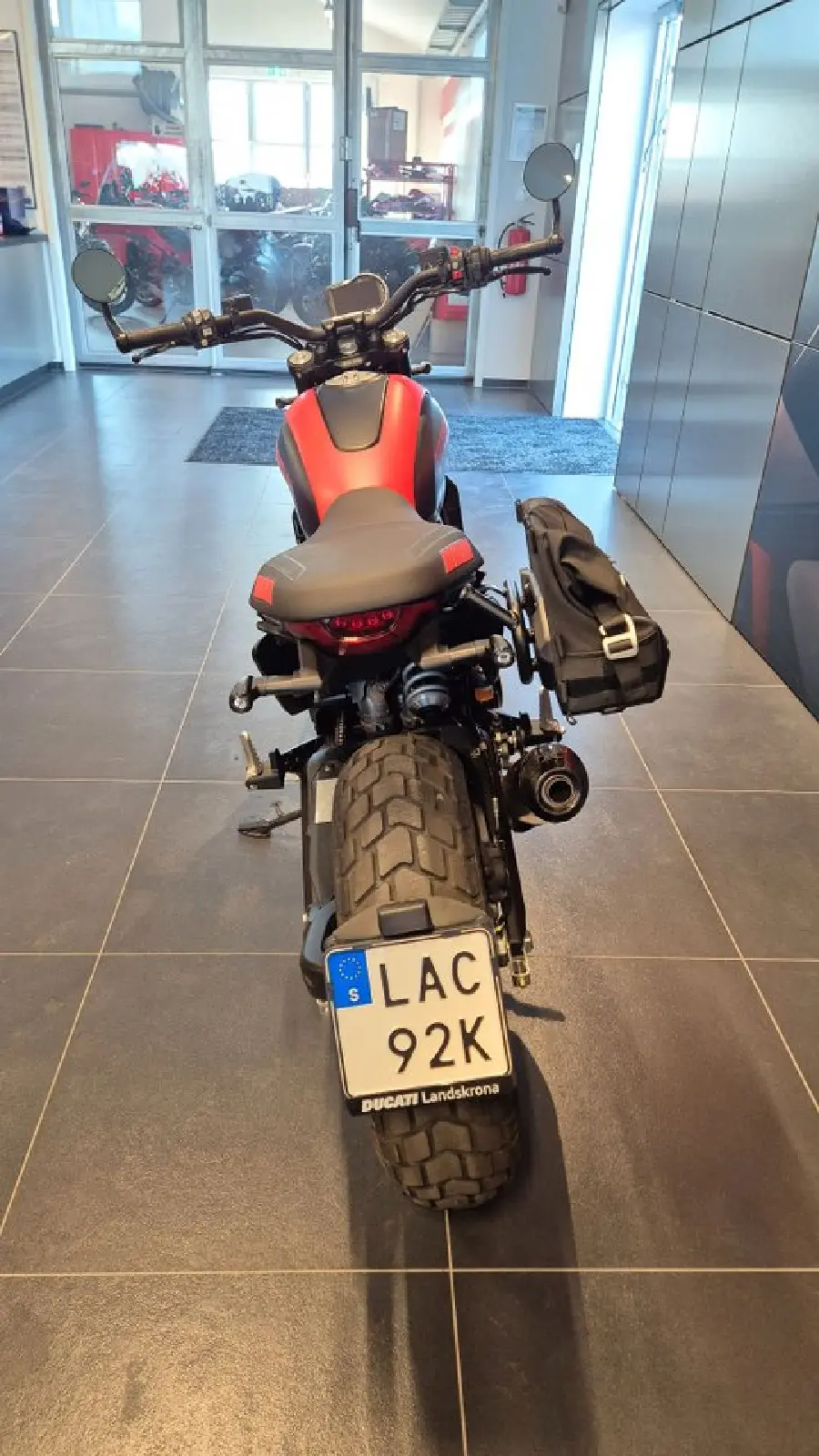 Ducati Scrambler Full Throttle. Extra utrustad med en bra sidoväska, kylarskydd och styrändspeglar.
