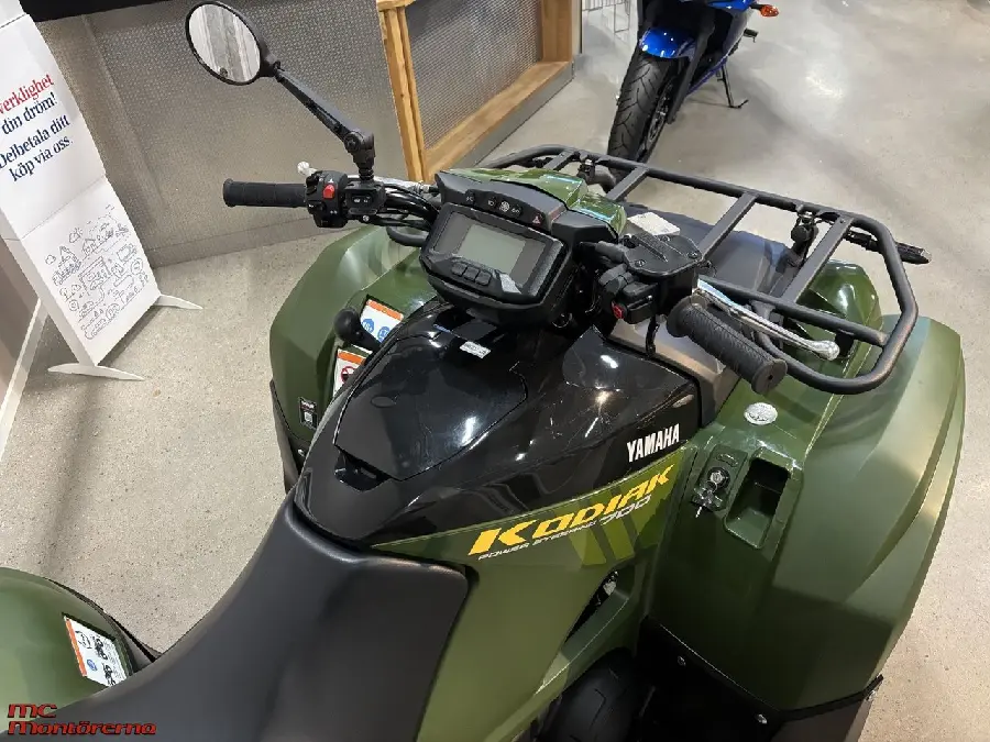 KODIAK 700 EPS Den användarvänliga Kodiak 700 EPS är konstruerad för jordbrukare. Skogsägare samt användare som behöver ett robust arbetsfordon som klarar tungt arbete. Den levererar överlägsen prestanda och är gjord för alla som är #DRIVENBYRESULTS., Denna extraordinära arbetsmaskin drivs av Yamahas välbeprövade MK II-motor med 686cc och har ett kompakt chassi med ett bekvämt säte för komfort under hela dagen. Den klarar en last på 140 kg plus förare och kan dra upp till 600 kg., Den smidiga växellådan Ultramatic® och systemet med 2- eller 4-hjulsdrift och med differentialspärr gör denna ATV till... ett perfekt arbetsredskap, och Yamaha EPS (elektrisk servostyrning) gör varje arbetsdag lite lättare och enklare., Behöver du hjälp med finansieringen? Vi hjälper dig med din avbetalningsplan ihop med Wasa kredit. Vi tar en administrationsavgift på alla inbyten 295:- Varmt välkommen in!