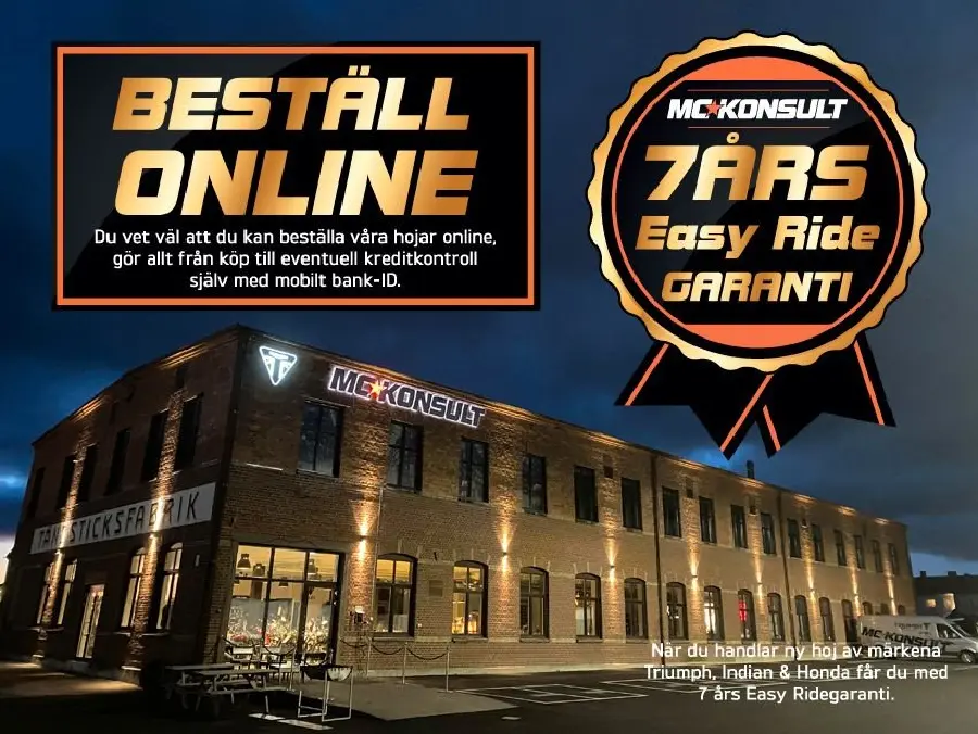* 7 Års Easy Ride garanti på nya mc över 500cc