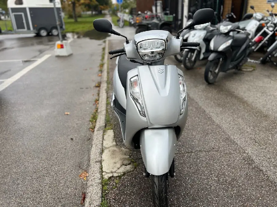 – Bakom skoterns klassiska, runda design döljer sig modern elektronik som en skarp LED-strålkastare på styret och snyggt inbyggda, lodräta LED-parkeringsljus i frontkåpan.