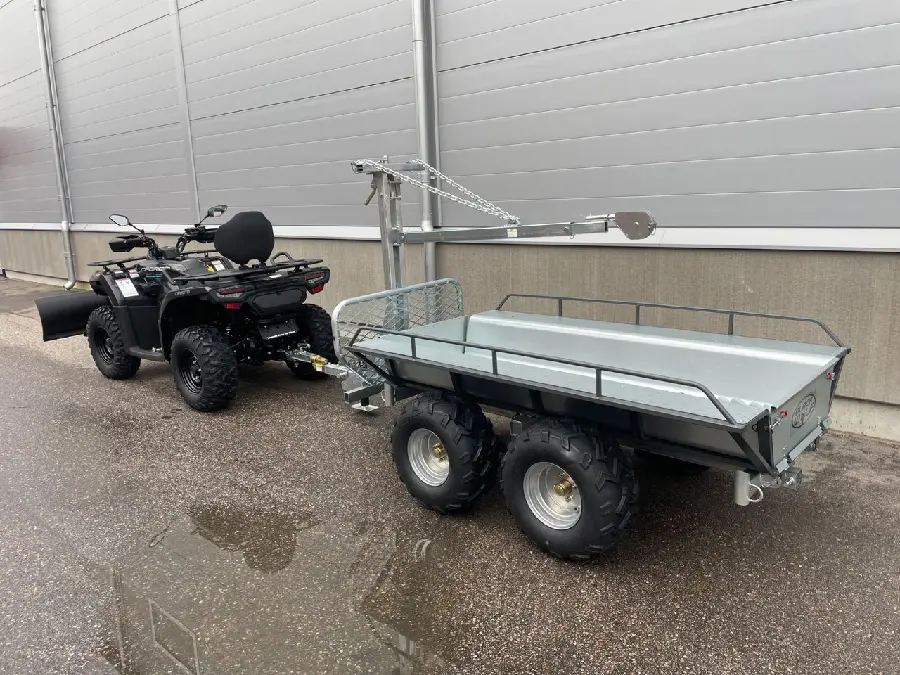 Nu har vi fått in nya CF-Moto cforce 450 med styrservo. Det här är marknadens kanske mest prisvärda kvalitetsmaskin. I Stora Gårdpaketet ingår en kraftig plog samt en kraftig Kombivagn med kran samt winsch och timmersax. (ej på bild). Allt monterat och klart!! Ta bort insatsflaket och du har en timmervagn. Priset avser terrängregistrerad fyrhjuling. +4000kr för Traktor A/B