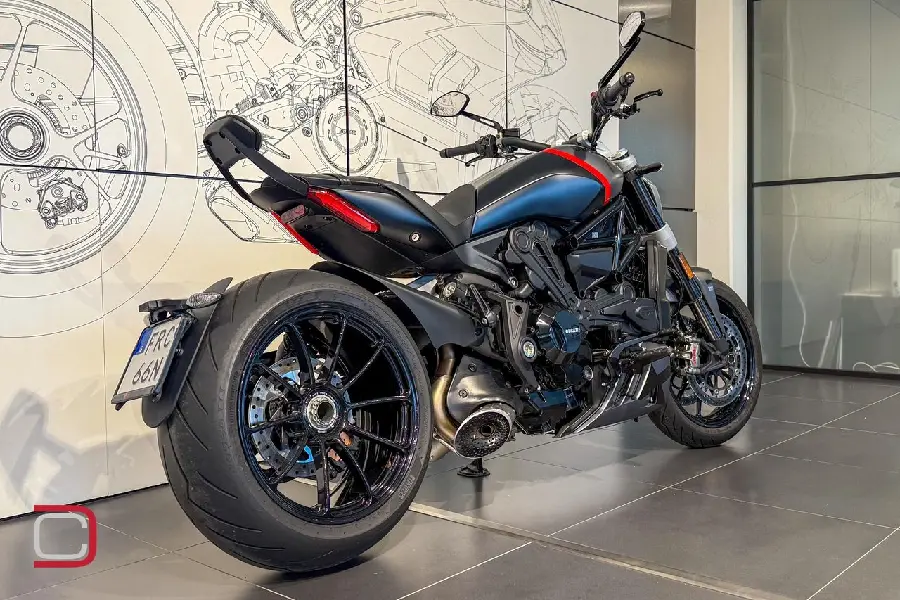 Ducati XDiavel Black Star med Termignoni avgassystem med tillhörande mappning, ryggstöd / sissy bar, farthållare, ABS, antispinn och justerbara körlägen.