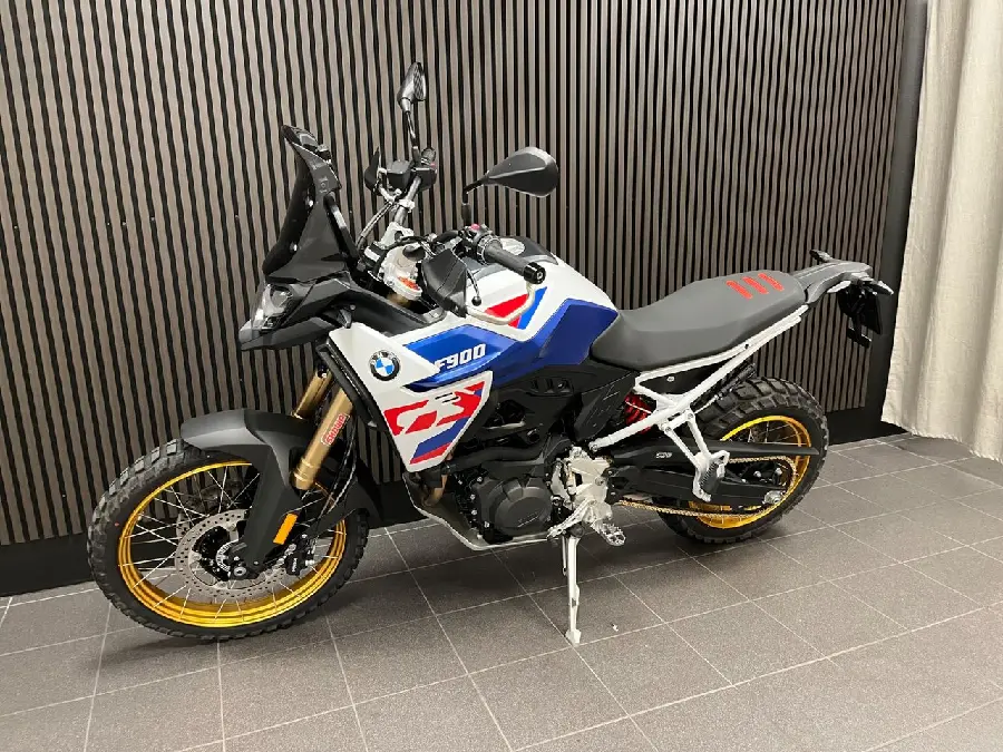 Nypris 204.995:- Utrustning: GS Trophy. Dynamic package (Gear shift assistent Pro. Riding modes Pro). M Endurance Chain. Keyless Ride. Enduro-Package Pro. Preparation for GPS device. Tyre pressure control. Cruise Control. Anti theft alarm system. Off-road tires. Intelligent emergency call. (F900. F 900 GS. F900 GS. F900 GS)