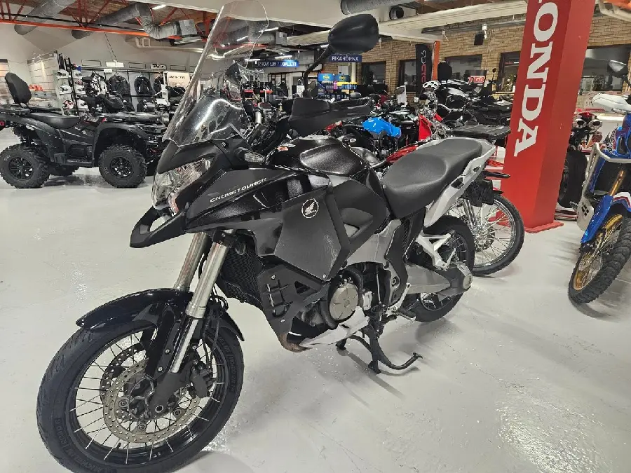 En VFR1200 i fint skick och nyligen gjord storservice, besiktigad 2025, däck ok, 12-volt uttag, väskor & toppbox, centralstöd, säljes åt kund, finans ordnas.