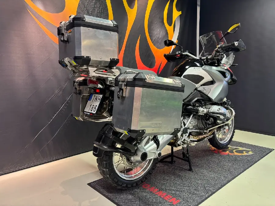 En klassisk äventyr hoj från BMW. Den fungerar utmärkt att pendla med eller ta en längre touring tur. Extra tillbehör: BMW toppbox och sidoväskor. Motorskydd med extra ljus samt tankskydd. R 1200GS . R1200GS . R 1200 GS .