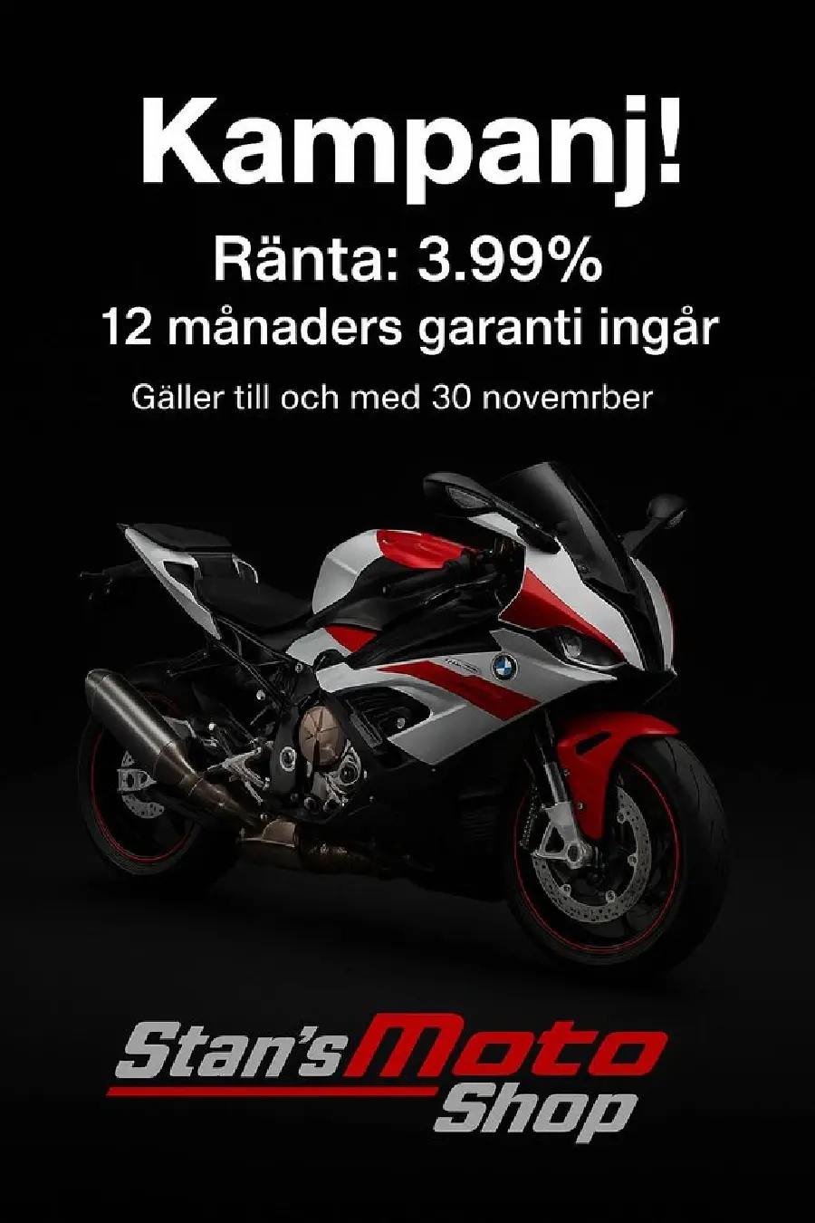 Inbyten: Vi tar gärna din motorcykel/bil i inbyte, kontakta oss för att få en värdering på ditt fordon.