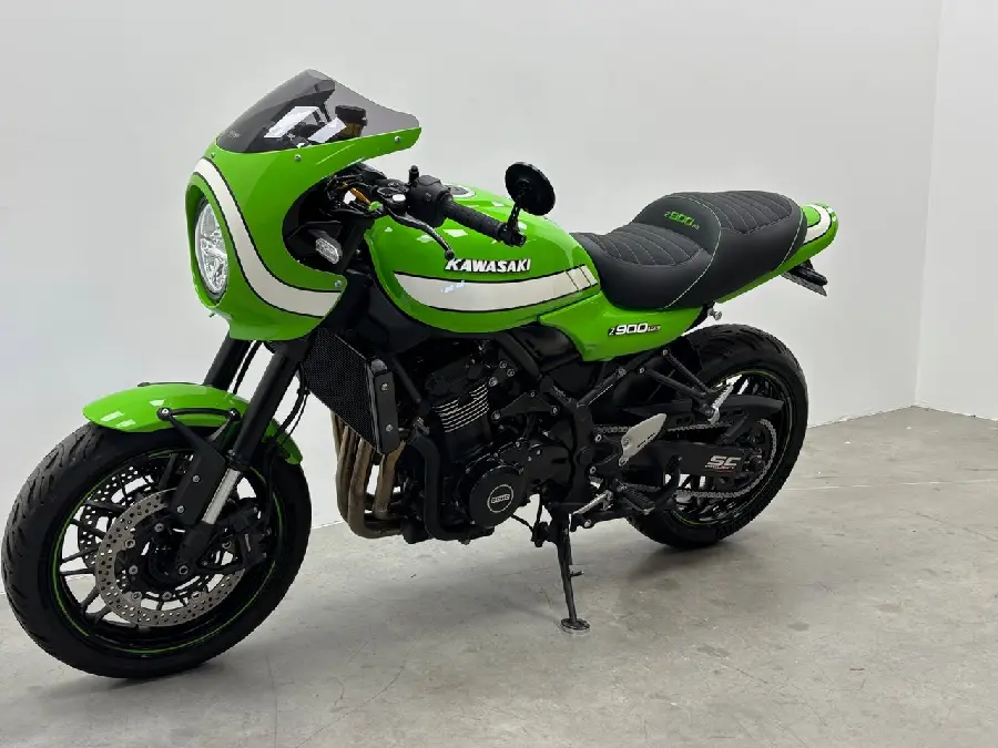 Nu har vi en mycket fin Kawasaki Z900RS Cafe` 4346mil. Utrustad med Tail tidy - Väska - Effektsystem - mappad och bar end mirrors.