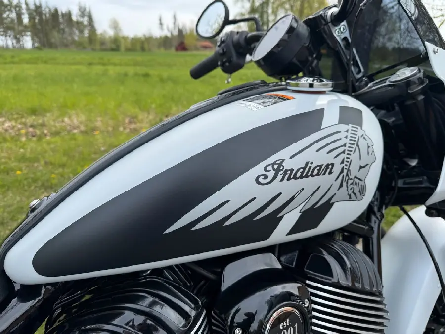 Passa på att slå till på en Helt Fabriksny Indian Chief Sport !Nu endast 225 000kr ( Ord.Pris 262 900 )Det märks att Sport Chief är specialbyggd från grunden för att prestera. Med förstklassiga prestandakomponenter som är kända över hela motorcykelindustrin bevisar Sport Chief att höga förväntningar aldrig blir omoderna. När det kommer till prestandaförmåga och aggressiv stil, så drar Sport Chief amerikansk V-twin-prestanda till en helt ny nivå.Tack vare beprövade märkeskomponenter som dubbla Fox® stötdämpare, en inverterad 43 mm KYB®-framgaffel, dubbla Brembo® 4-kolvsok med semiflytande bromsskivor,... är Sport Chief den ultimata prestandaglidaren i Indian Motorcycles modellprogram.Att bygga det bästa stannar inte vid premiumprodukter för fjädring och bromsar. Att placera föraren rätt är en viktig del av att maximera prestanda. Tack vare enkelsadeln av gunfighter-modell, med högre bolster, en lutningsvinkel som ökar till 29,5 grader samt mittplacerade fotpinnar, kan förare köra både hårdare och längre med obrutet förtroende och komfort. Sport Chief har ett stuk som matchar alla dess åkförbättrande komponenter. Den nya lampkåpan har ett 6,5-tums kåpglas som vindskydd och bidrar till det aggressiva utseendet. De lätta aluminiumfälgarna på 19-tum fram och 16-tum bak är kontrastfrästa och är klädda med Pirelli® Night Dragon-däck, som ger både styling och kontroll. Att höja ribban när det kommer till prestanda och stil betyder att inga detaljer får förbises. Snygga, stilenligt frästa gaffelkronor och risers matchar styret och detaljer binder ihop både customlooken och ergonomin till ett aggressivt paket.En rund, 4-tums pekskärm upprätthåller en klassisk estetik genom att maskera sig som analog mätare. ---------------------------------------------------------------------------------------Specifikationer :Motortyp Luftkyld Thunderstroke 116Slagvolym 1890 ccBorr X slaglängd 103.2mm x 113mmKompression 11:1Electronisk bränsleinsprutning Lambdareglerad bränsleinsprutning / 54 mm spjällhusPrestanda Maximalt vridmoment / varv 3200 rpmMaximalt vridmoment 162 NmFjädring Framgaffel - Typ/Slaglängd KYB® Inverterad teleskopgaffel - 130 mmBakfjädringr - Typ/Slaglängd Dubbla Fox® Piggyback-stötdämpare - 100 mmChassis Bromsar/Fram Dubbla Brembo® / 320mm semiflytande skivor / 4-kolvsokBromsar/Bak Enkel/ 300mm Semiflytande skiva / 2-kolvsokDäck/Fram Pirelli® Night Dragon 130/60B19 61HDäck/Bak Pirelli® Night Dragon 180/65 B16 81HHjul (Fram & Bak) Svart gjuten aluminiumfälg 19 in x 3.5 in - Svart, gjuten aluminiumfälg 16 x 5 tumAvgassystem Dubbla avgasrör med crossoverHjulbas 1640 mmSadelhöjd 686 mmMarkfrigång 149 mmTotallängd 2301 mmTotalbredd 842 mmTotalhöjd 1270 mmLutningsvinkel 29.5°Gaffelvinkel 28°Försprång 111 mmBränslekapacitet 15.1LTotalvikt 526 kgVikt (Tom tank / fulltankad) 302 kg / 311 kgSökord:Indian ChiefIndian SportChiefSport ChiefSport-Chief