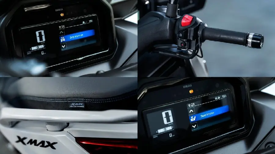För att ge skräddarsytt vindskydd är XMAX 300 Tech MAX+ utrustad med ett elektronisk justerbart kåpglas som erbjuder 95 mm steglös justering samtidigt som de specialdesignade främre blinkersen och frontspoilern också dämpar vinddraget. Tillsammans med det justerbara styret och de rymliga fotplattorna är det enkelt för XMAX 300 Tech MAX+-förare att uppnå de idealiska inställningarna.Den breda instrumentpanelen har en lättläst 4,2tums TFT skärm i färg tillsammans med en 2,8 tums LCD-skärm. Fullständig uppkoppling ger dig tillgång till kostnadsfri Garmin-navigering* via smartphone, plus samtal, SMS,... musik med mera. Och med antispinnsystem, ABS och en ny nödstoppsfunktion (ESS) är XMAX 300 Tech MAX+ fullt rustad för varje åktur!
