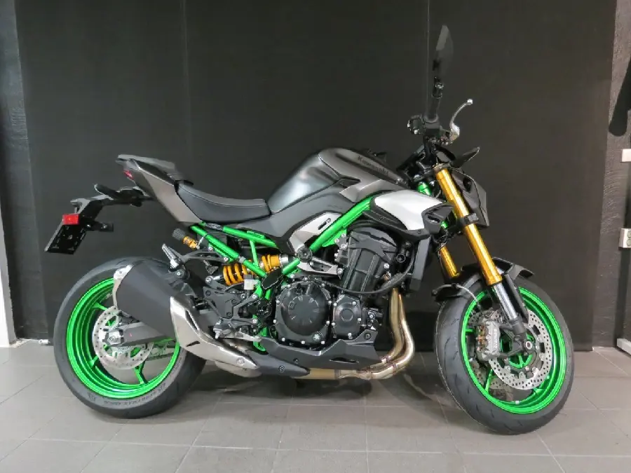 Z900SE . NU ÄR DEN INKOMMEN DEN POPULÄRA Z 900 I SE UTFÖRANDET . NY FÄRGSÄTTNING 2026 OCH UTÖVER DEN VANLIGA Z 900 HAR DEN FÖLJANDE UTRUSTNING . ÖHLINS STÖTDÄMOARE. BREMBO OM FRAM, GUDLFÄRGAD FRAMGAFFEL, SPECIALKLÄDSEL PÅ SADLARNA OCH LACKERADE FÄLGAR OCH RAM I GRÖNT .