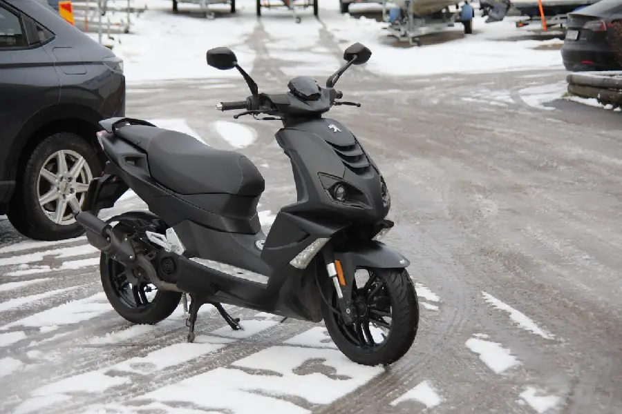 Peugeot Speedfight är en smart och praktisk 45 km/h moped klass 1 med cool design och bra kvalitet. Peugeots Speedfighter gillas av många för dess tuffa utstrålning, vassa prestanda och sportiga köregenskaper.Här är ett ex i bra skick med endast 418 mil körda i det snygga mattsvarta utförandet.