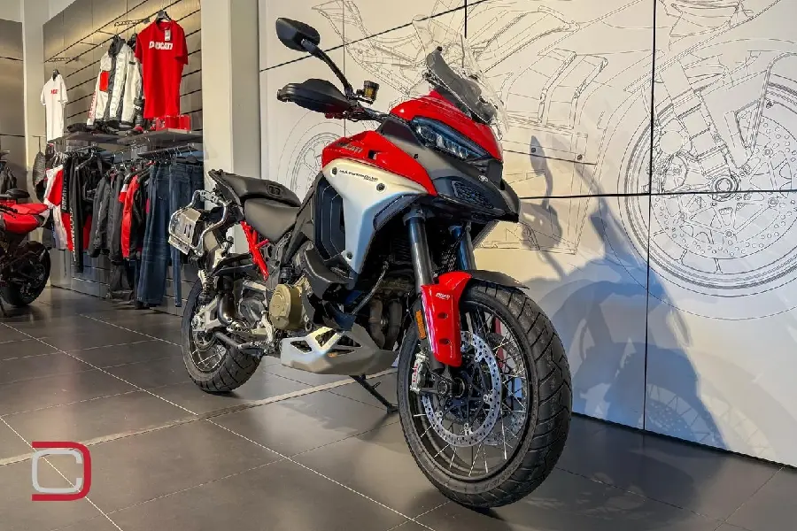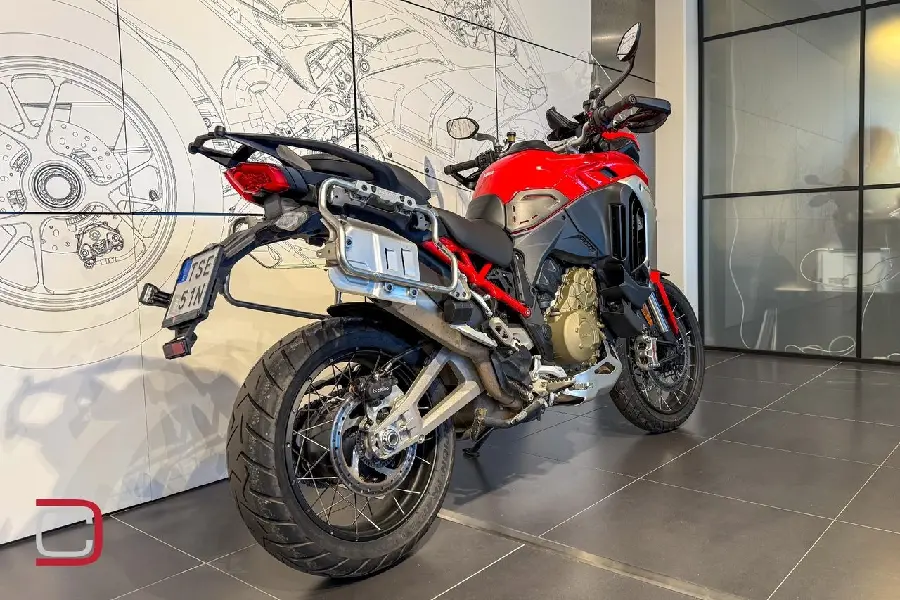 Ducati Multistrada V4 Rally utrustad med bland annat värmehandtag, värme i båda sadlarna, ekerfälgar, adaptiv farthållare, elektroniskt justerbar fjädring fram & bak, justerbar ruta, hasplåt, centralstöd och bågar för väskor.Nyservad av oss 2025-09-03Kvarvarande fabriksgaranti till 2027-10-23Besiktigas senast 2027-10-31Miltal: 870Regnr: TSE51NHar du en motorcykel som du vill byta in?Skicka med följande information:Regnr:Miltal:Senaste service, var & när:Eftermonterad extrautrustning: Allmänt om skicket (däck, bromsar, ev. skador):adventure äventyrshoj ävenyrs hoj adventurehoj touringmaskin... touring maskin touringhoj touring hoj V4S V 4 S V4 S V 4S v4 rally v4rally rally v4 rallyv4